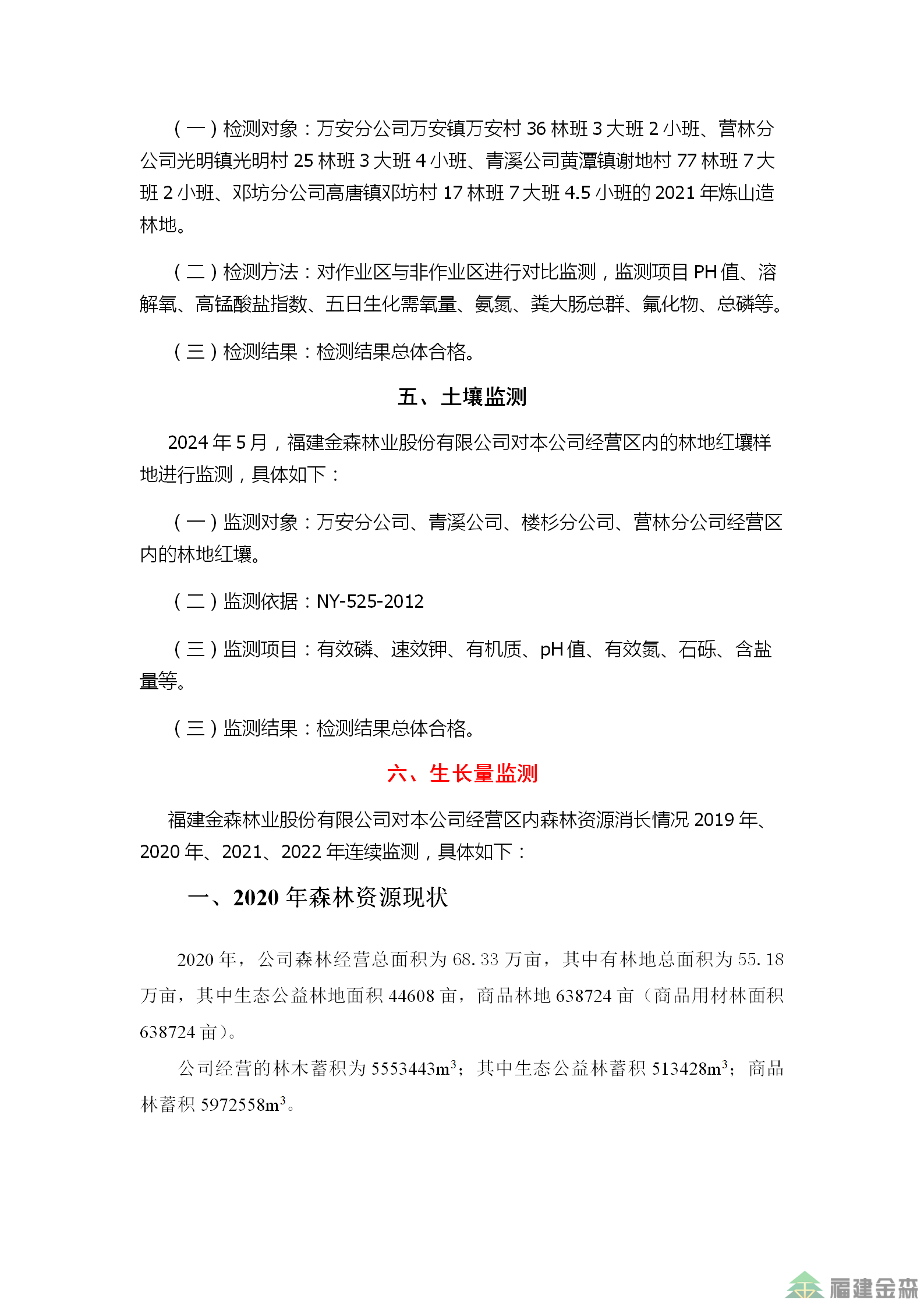 金森公司2024年監(jiān)測(cè)結(jié)果